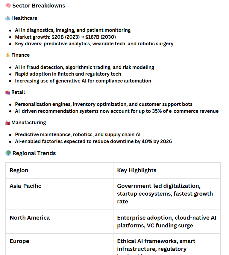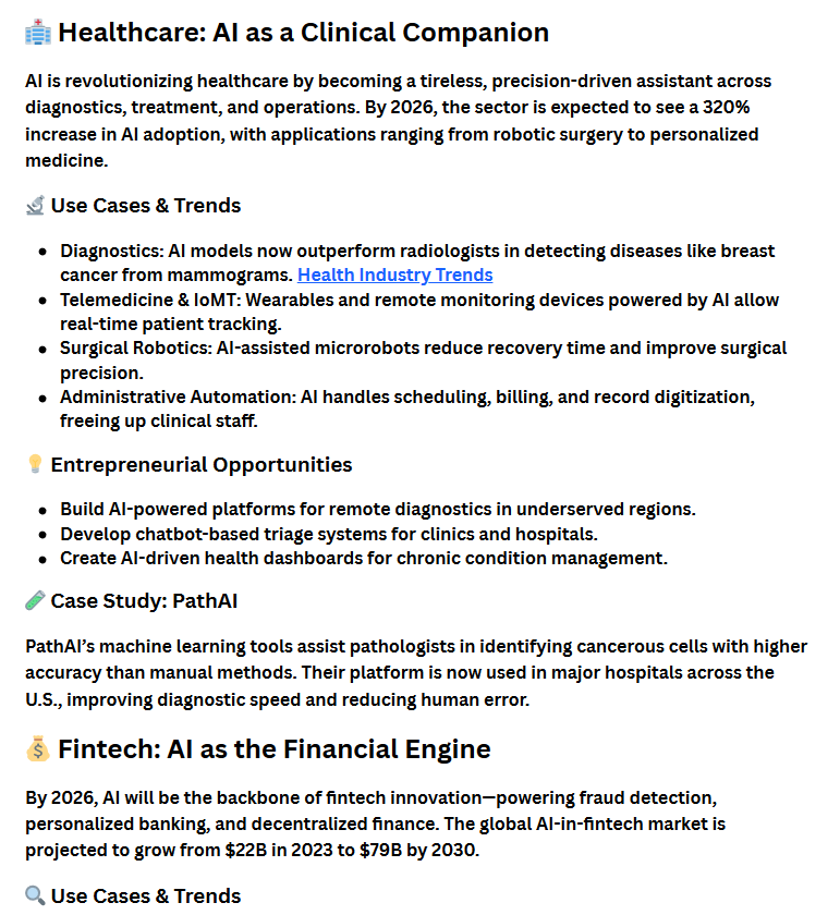- 💡 Sector Deep-Dives: Healthcare, Fintech, Energy, Logistics, Education