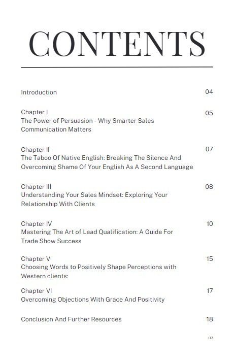 - Closing Sales Fast in English - Ebook packed with tips and scripts to help non-native speakers master the art of Qualifying prospects, generating leads and closing deals.