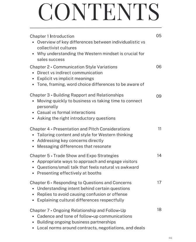 Expanding into Western cultures presents huge opportunities but also requires adapting your sales approach. This comprehensive 52-page guide helps you: